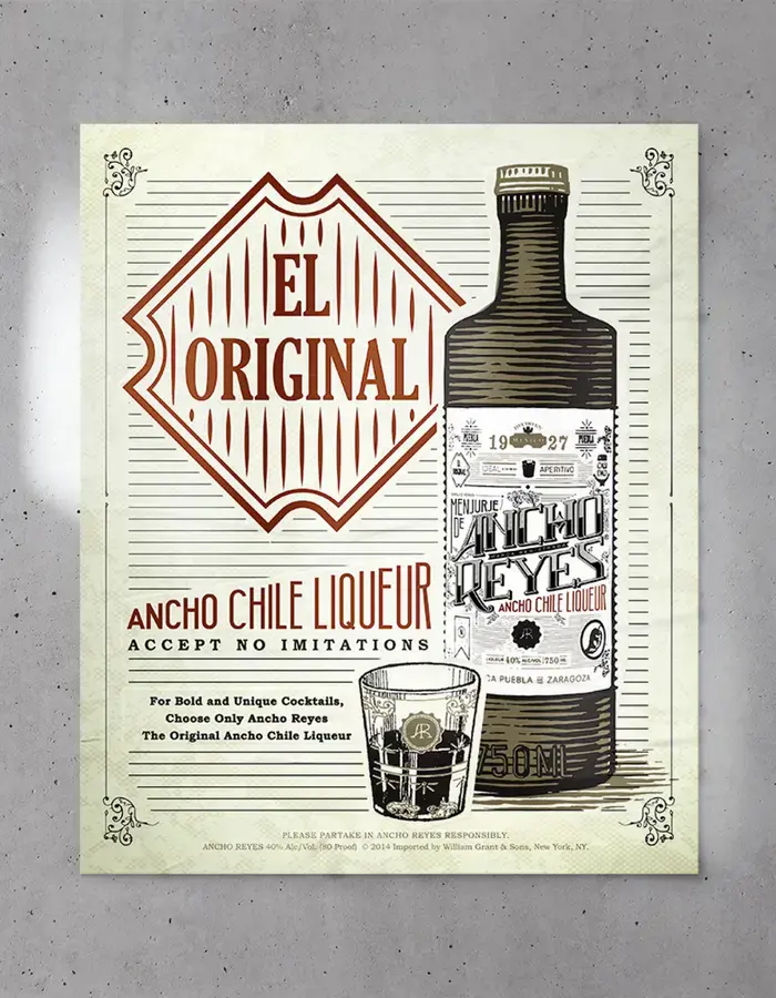 Created from a 1927 Puebla family recipe that was served in Mexico's post-revolutionary cantinas and salones, Ancho Reyes is "The Original Ancho Chile Liqueur" a unique menjurje that fueled an artistic revolution among the country's intelligentsia. WeHolden traveled to Puebla to play dominos in centuries-old cantinas, explore and document the history of the liqueur, and develop a brand tone, experiential events, time-worn assets, and digital and social media worthy of the liquid's incendiary history. Working with Casa Lumbre and trade partners The Bon Vivants, Ancho Reyes launched in November 2013 and quickly became one of the hottest brands in the spirits world, being acquired by Campari in 2019.